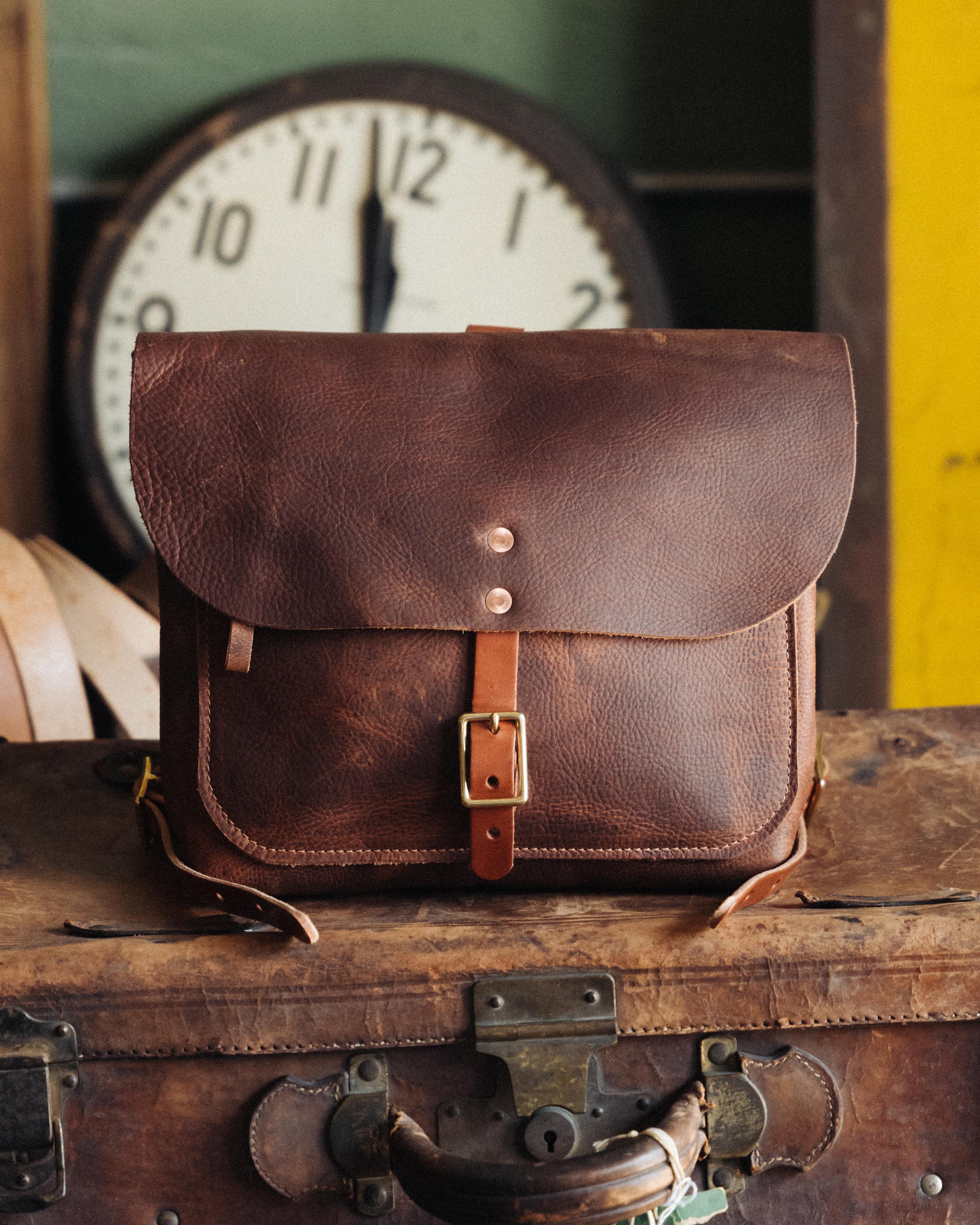 While we love every leather in the KMM & Co. collection, Cypress and Kodiak are two of our favorite tannages, and Horween is one of our most beloved tanneries! Kodiak is an oil-tanned leather that's a great choice if you prefer a leather with pull-up (the tendency to lighten in areas of wear of stress). Cypress has a slouchier temper and a more pronounced pebbled grain than Kodiak. Both are soft and comfortable to carry, and they wear in beautifully with age and use. Horween's Dublin, Chromexcel, and Essex are all iconic leathers that we rotate in and out of stock, as inventory allows. They're more structured than either Kodiak or Cypress, and they're the perfect choice if you want a bag that's 100% made in the USA, since Horween is a family-owned tannery in Chicago.