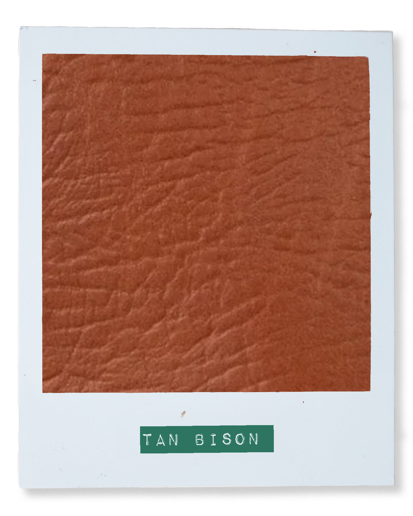 Tan Bison is a chrome tanned full grain leather made from free roaming American Buffalo. The leather is tanned by Law Tanning in Milwaukee, Wisconsin. This bison leather is light weight, very pebbled, and structured enough to stand up on its own. This is some of the cleanest bison leather we’ve seen, but it’s still got enough character to make you stop and stare. Tan Bison is a limited leather, so once it sells out, it will be gone for good.
