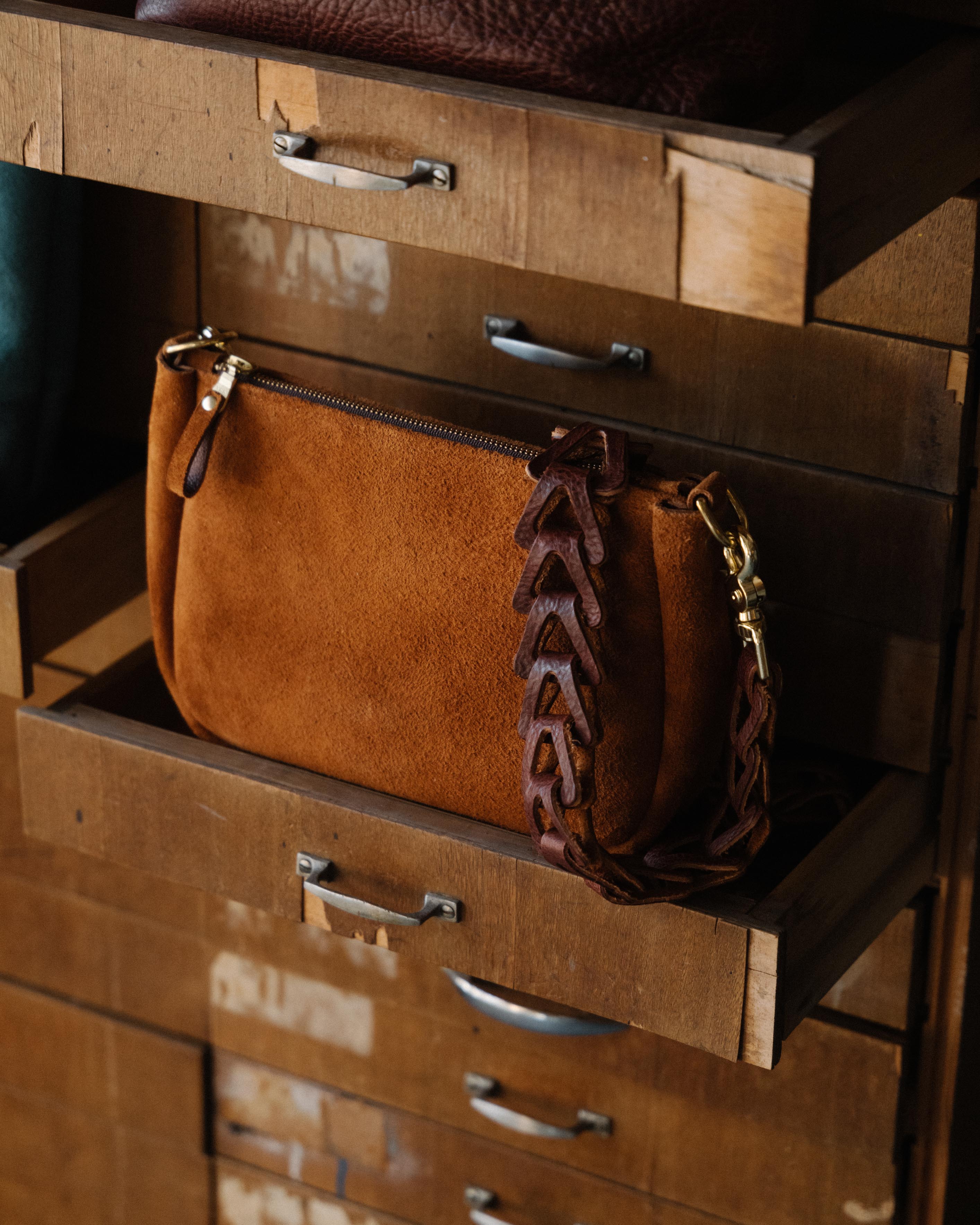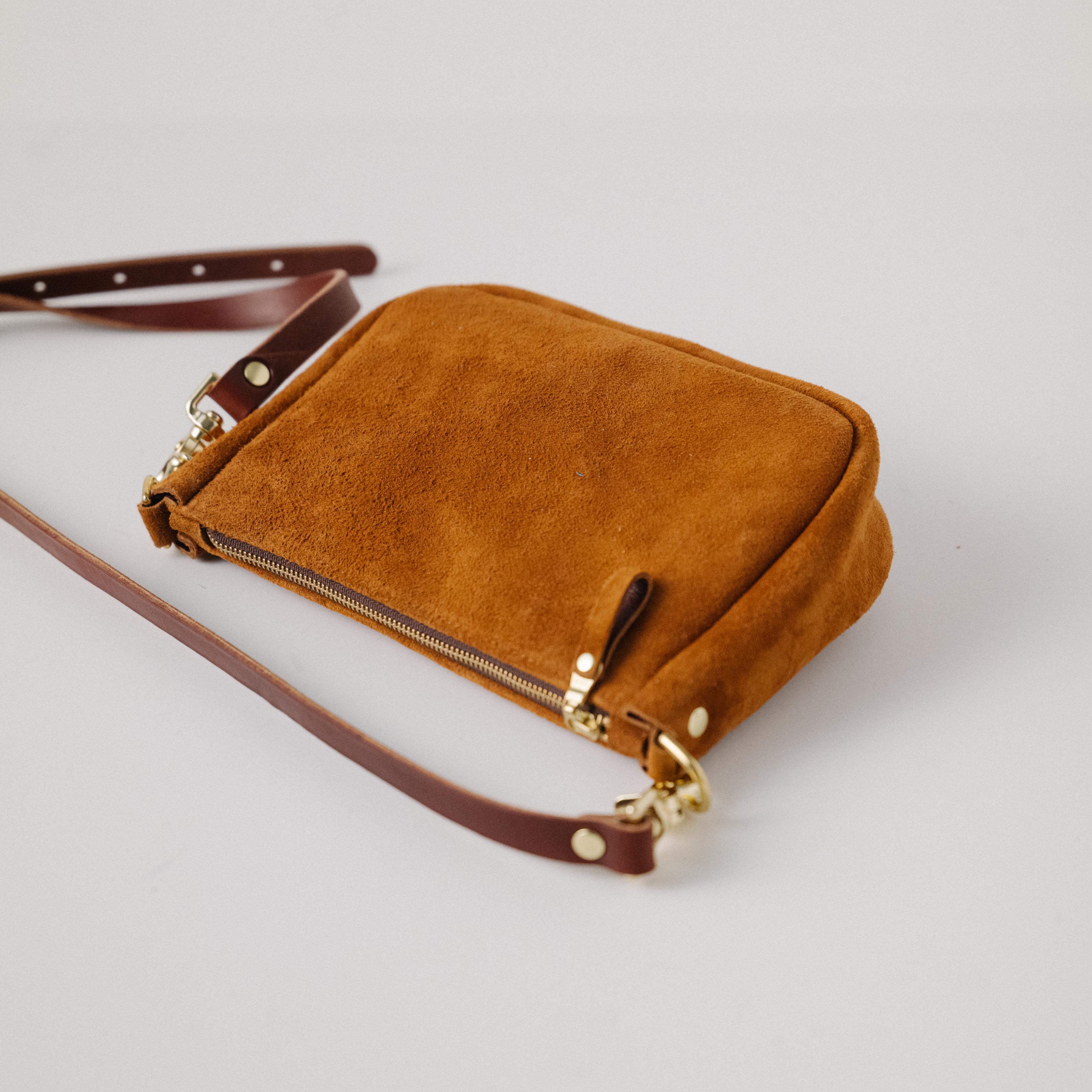 The Mini Crossbody Bag is handmade of beautiful full-grain leather, with a solid brass zipper. The Mini Crossbody Bag is just like our classic Crossbody Bag — but smaller and cuter! Like the other members of the Crossbody Bag family, it's handmade in the USA of beautiful full-grain leather. It comes standard with a solid brass zipper to keep your belongings secure and solid brass D-rings to attach a crossbody or shoulder strap. Choose from a crossbody strap made in the same leather as your bag — like a vintage-inspired chain link strap, a super-adjustable slider strap, or a squishy two-ply strap — or go with a classic crossbody strap in your choice of belting-weight leather.