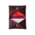 The new double card envelope is new take on the most popular leather wallet in our collection. It is a two pocket wallet with a snap closure that holds a whole bunch of cards. It's made of full-grain leather, and can be embossed with your initials at no additional charge. It measures 4 inches by 2.5 inches when closed.