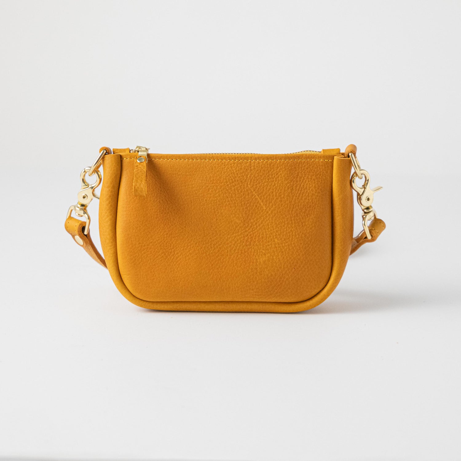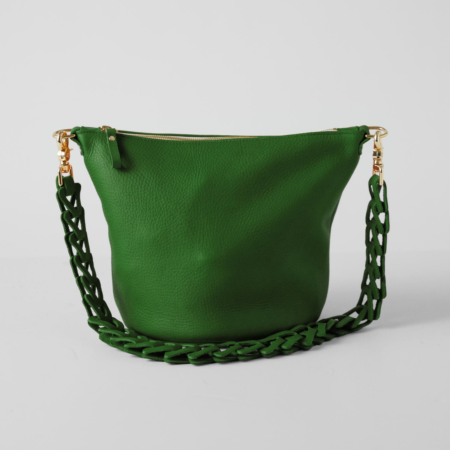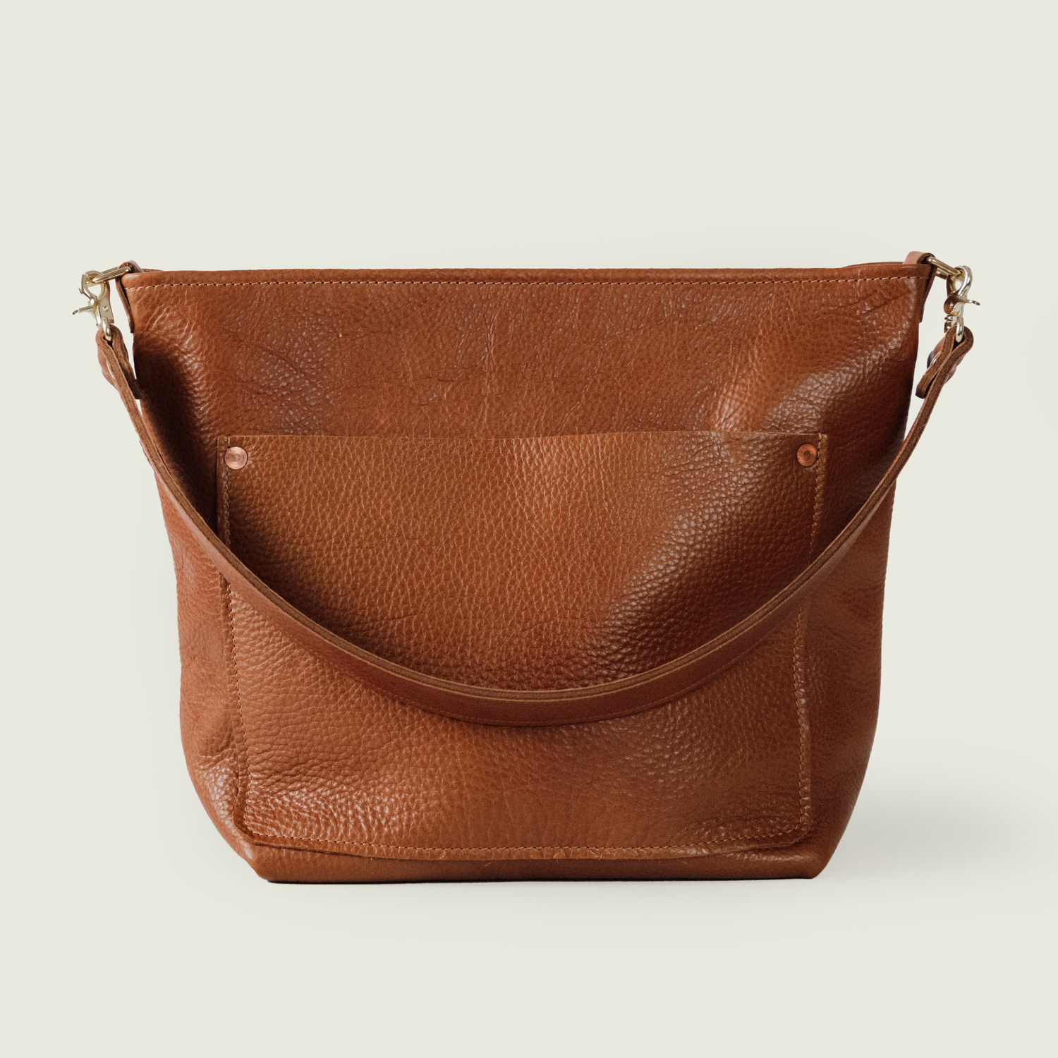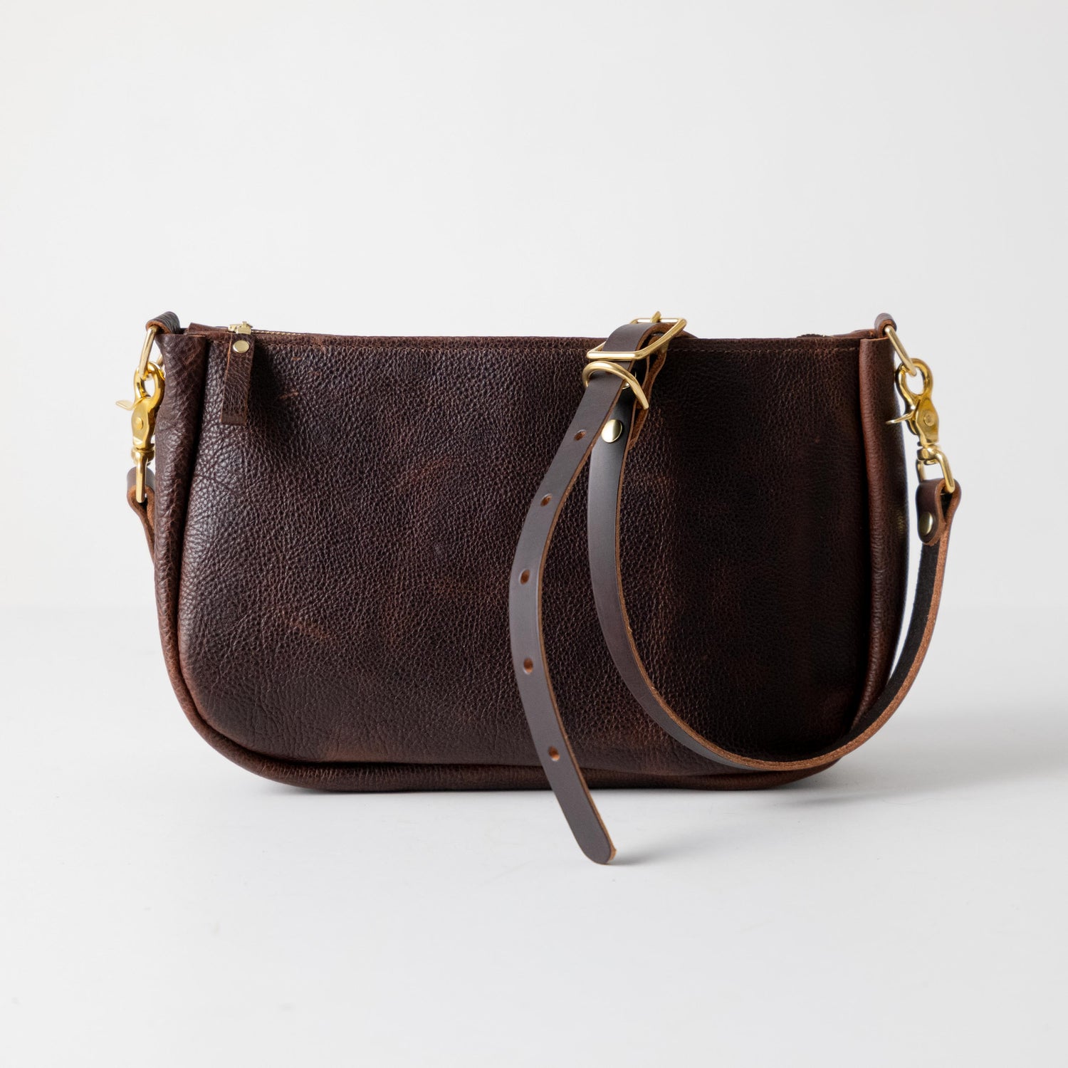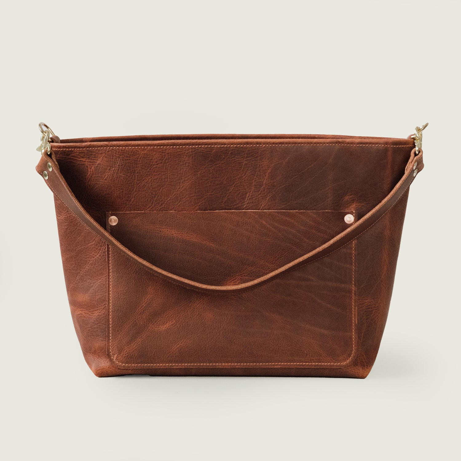 The Leather Handbags collection is the place to shop all of KMM & Co.'s leather purses and handbags. This is the collection where we have the most fun in the design phase: From vintage-inspired chain-link straps to tasseled bucket bags to classic crossbody bags with the most satisfying USA-made zippers — seriously, we challenge you not to enjoy zipping the big leather pull back and forth — the details on these leather bags are just so fun. So much fun, in fact, that we once convinced the men of KMM & Co. (owners, production manger, production assistants) to film a makeshift runway show modeling some of these new styles. The footage might be lost to time — or we might be able to find you a copy if you ask nicely. You never know.