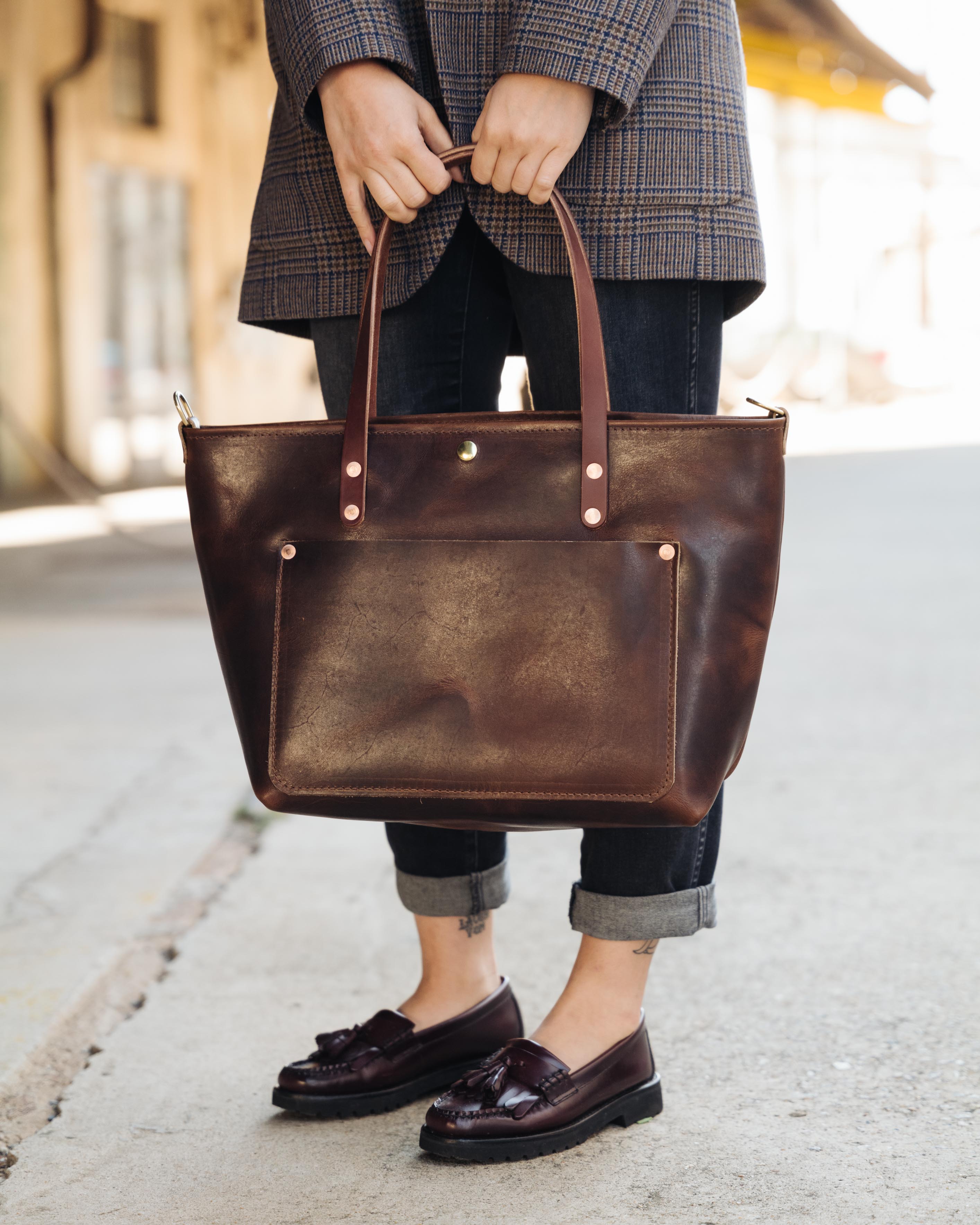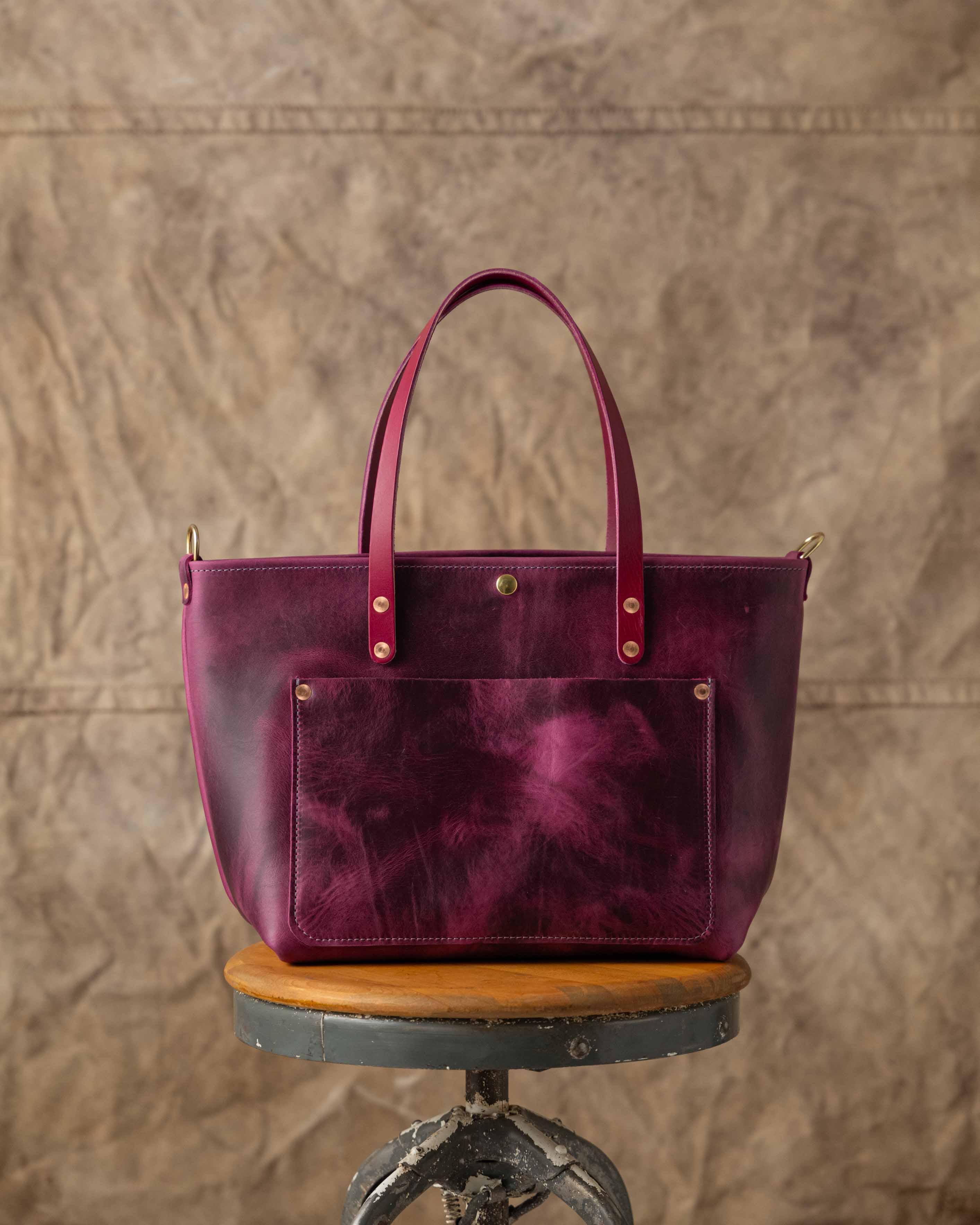 The East West travel tote, like every KMM & Co. bag, is handmade of full-grain leather. That's the highest quality leather made, with all of the natural grain and character of the leather intact. Plus, we stock more (and brighter!) colors than just about anyone else.