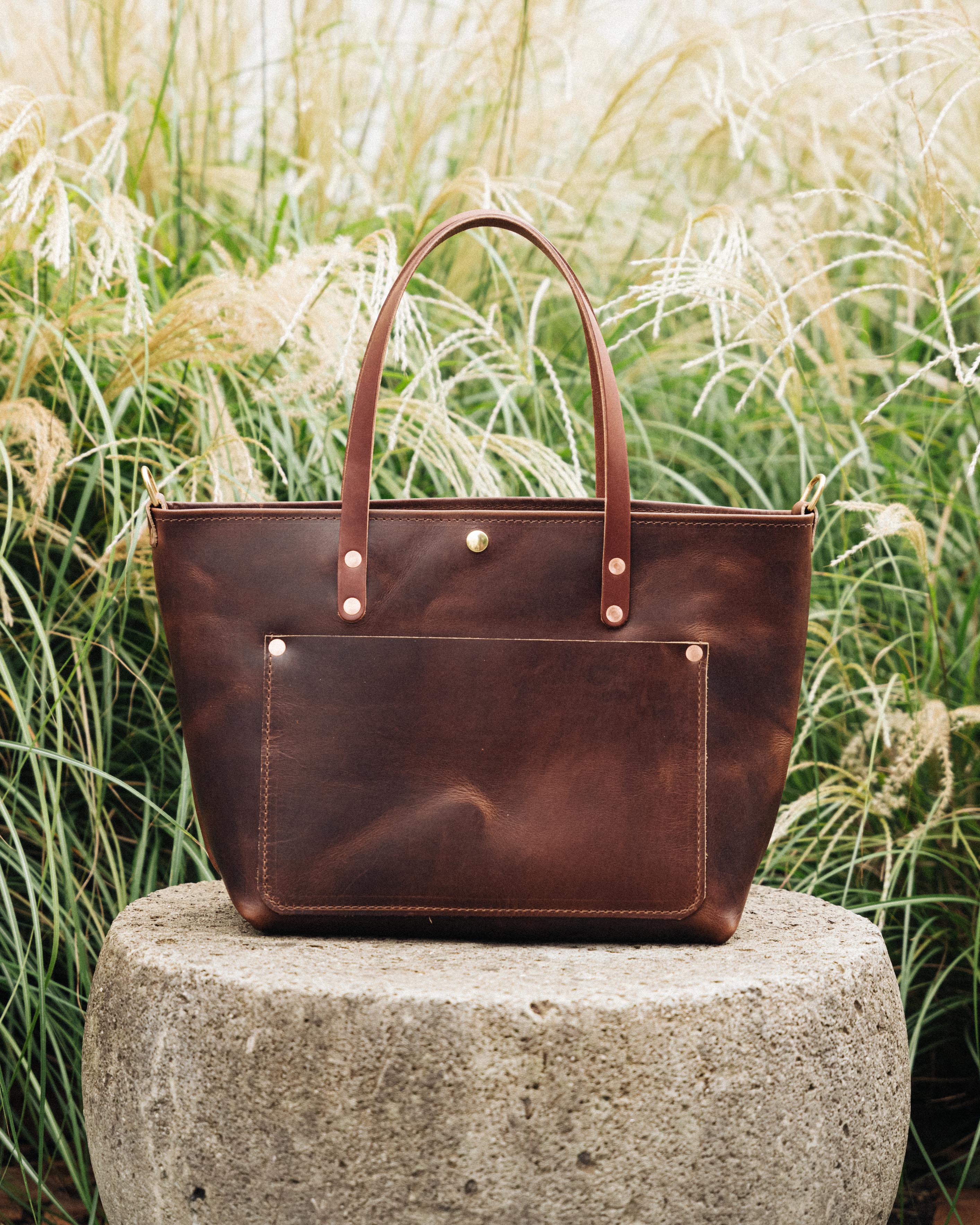 We love every color in our collection, but after making thousands of totes and working with hundreds of different full-grain leathers, we're partial to Kodiak and Cypress leathers. For each color we introduce, we reject hundreds of other colors and tannages: KMM & Co. leathers are truly the best of the best.