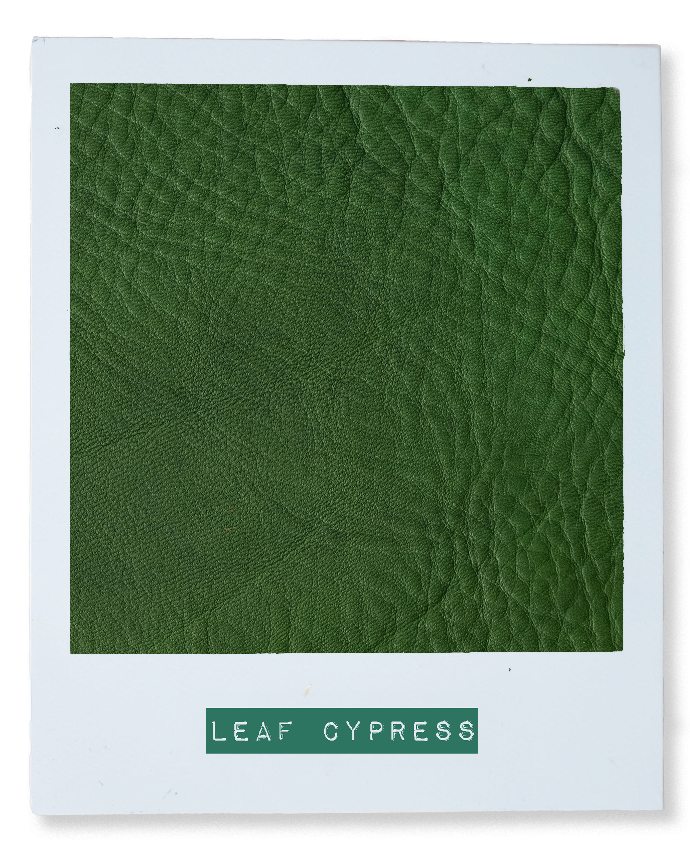Leaf Cypress is a full grain chrome tanned leather that is a customer favorite. It has a soft hand feel, pebbled texture, and pigmented color. Cypress is available in a wide range of classic neutral colors as well as some brighter shades for anyone that wants something a little different.