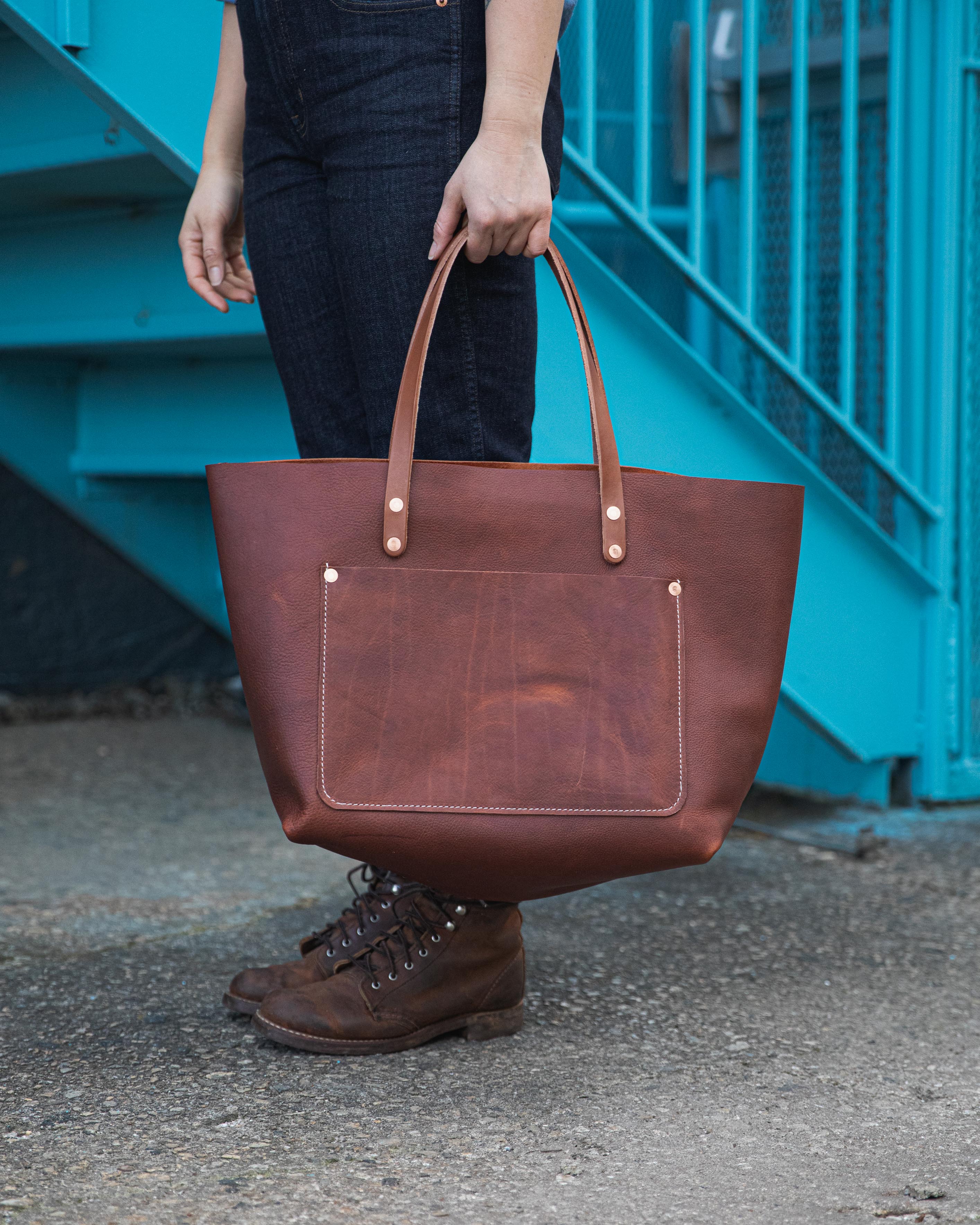 Like every KMM & Co. bag, the market tote is handmade of full-grain leather. That's the highest quality leather made, and we stock more (and brighter!) colors than just about anyone else.