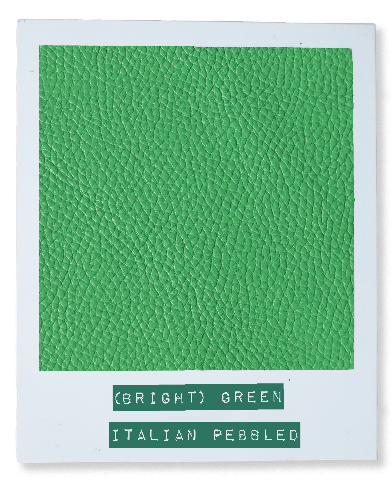 Italian Pebbled Leather is as described. Italian and Pebbled. It is a chrome tanned leather that was designed to consistent, lightweight, and scratch resistant. It is the closes thing that we have to a traditional “handbag” leather, and it’s especially great for smaller bags and accessories. Since the leather doesn’t have a high oil or wax content, you get to see the saturated fundamental color of the leather in a brighter shade that would be possible with other tanning processes and finishes. This is a limited leather, so get it soon if you can’t live without it.