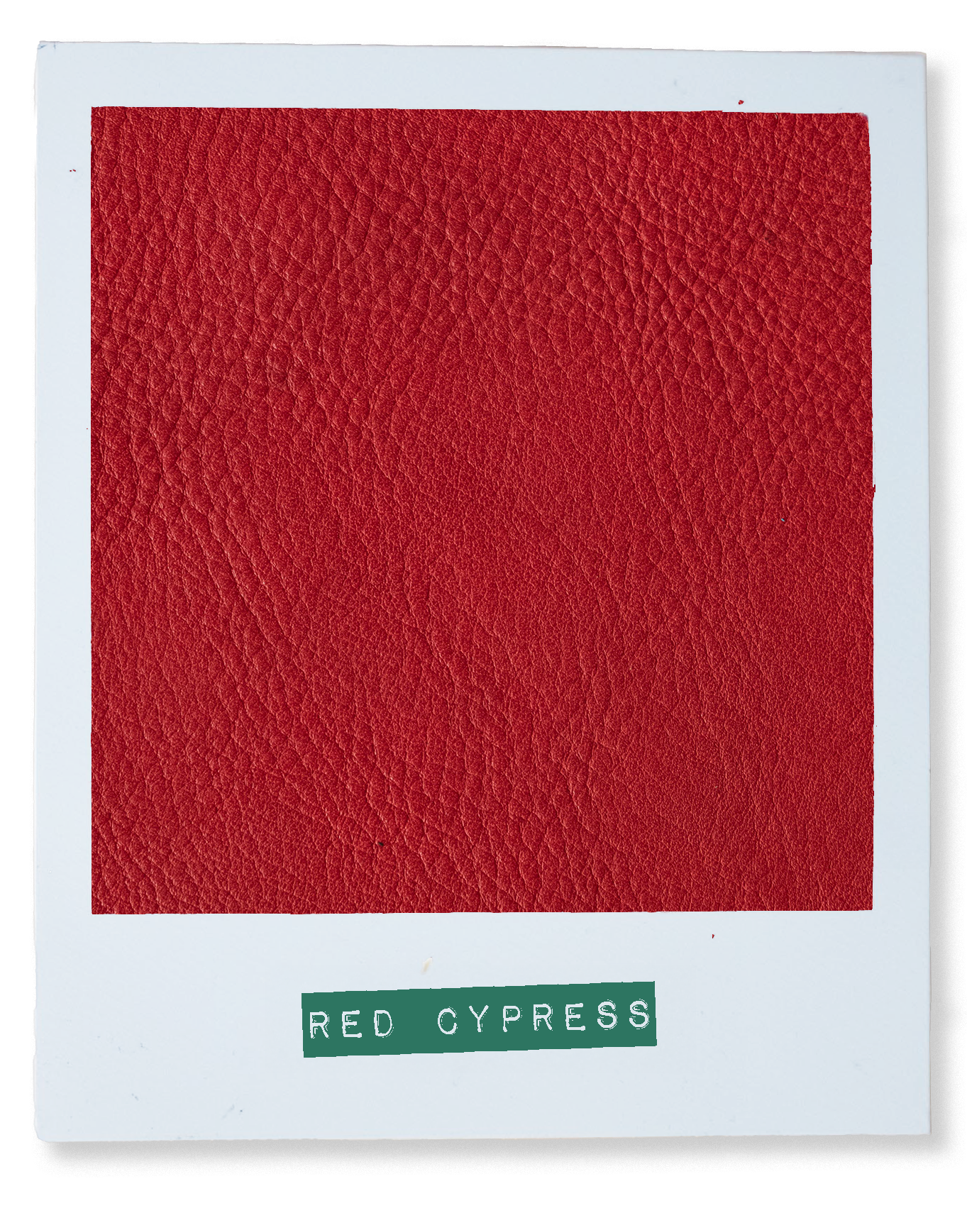 See more in Red Cypress, a thick and soft leather, with a beautiful pebbled grain and a vibrant red color.