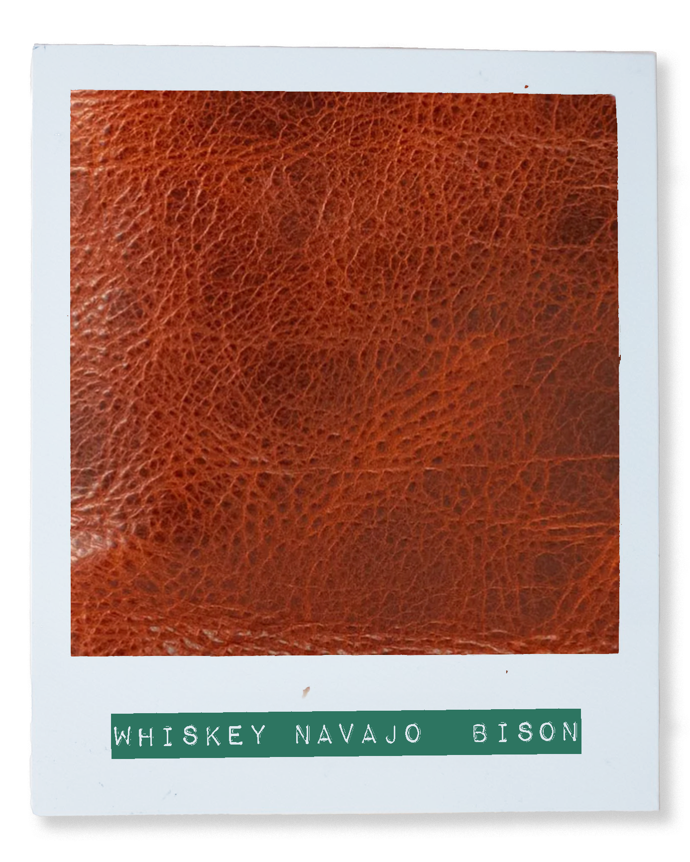 See more in Whiskey Navajo Bison, a vegetable tanned leather with a vibrant color, dramatic pull-up, and prominent natural grain. .