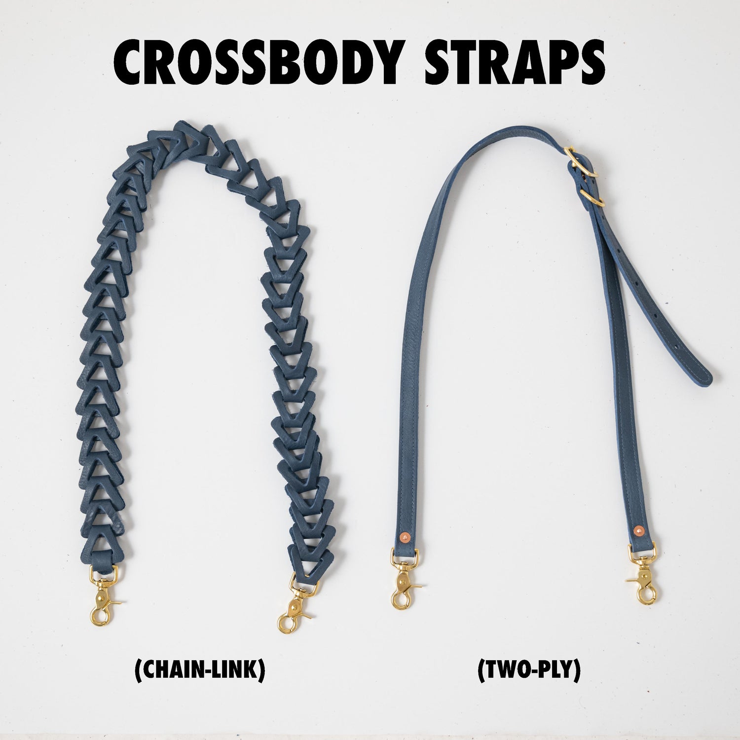 Finally, we make the strap for your bag. You can go with the fun, elegant, and endlessly adjustable chain link strap. Or, pick the squishy, luxurious, two-ply shoulder strap. (The two-ply strap shows off our new coordinating thread, one of the many details that set a KMM & Co. bag apart as an heirloom.)