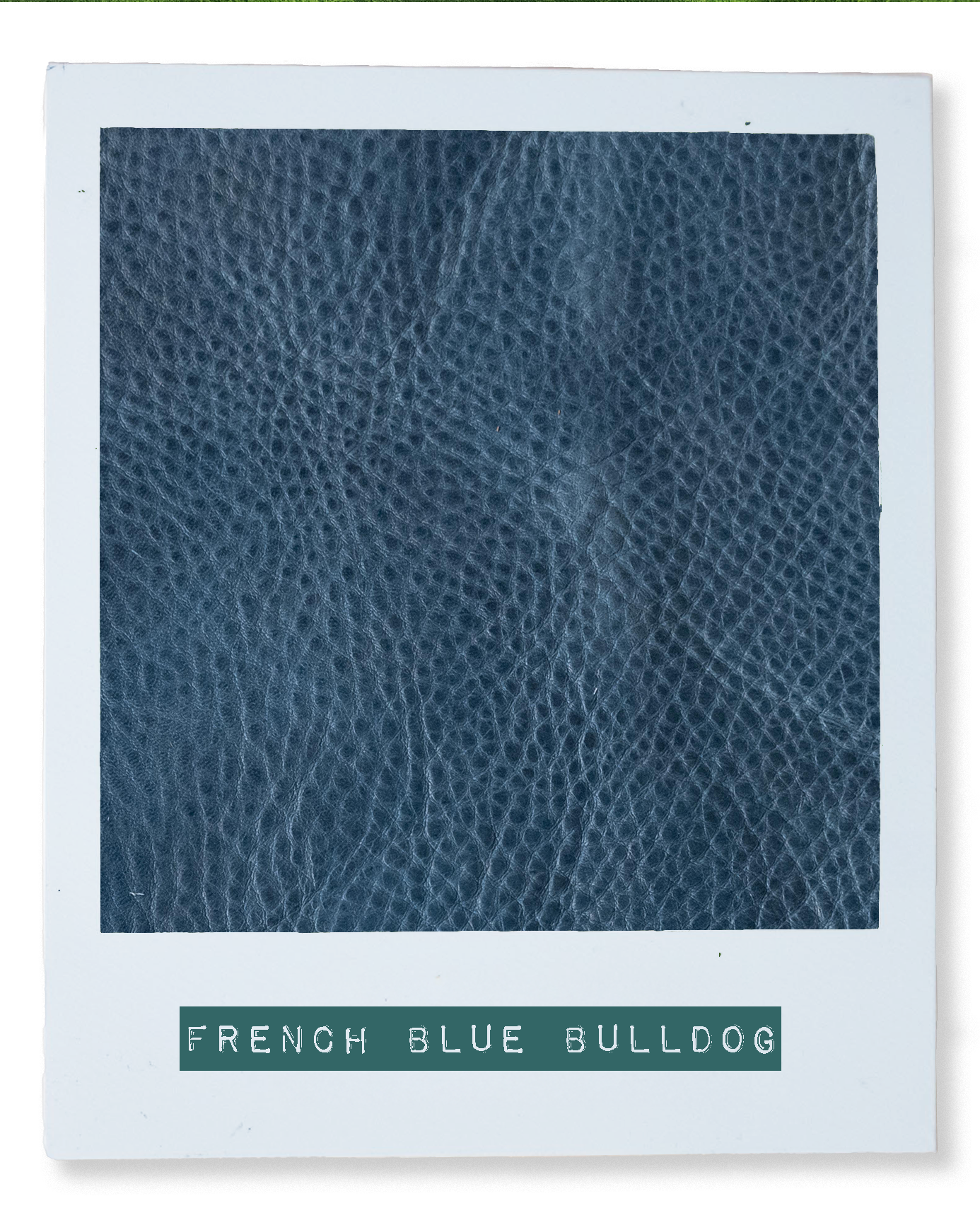 Bulldog is a recent addition to the KMM & Co. lineup. This scratch resistant, full grain leather is drum-dyed and tumbled to achieve a soft, pebbled texture. Bulldog leathers are aniline and wax finished with some stretch and a slight pull-up effect. They are USA Cowhides finished in Mexico by Vargas Tanning and come in some pretty amazing colors.