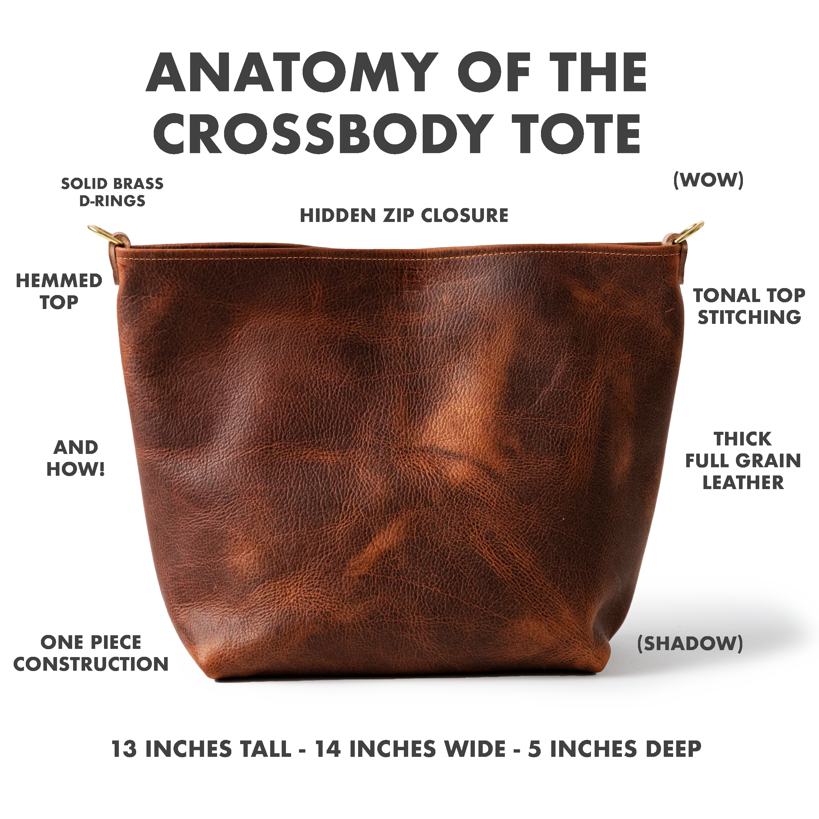 The Crossbody Tote comes standard with a zip closure to keep all of your belongings safe and sound.