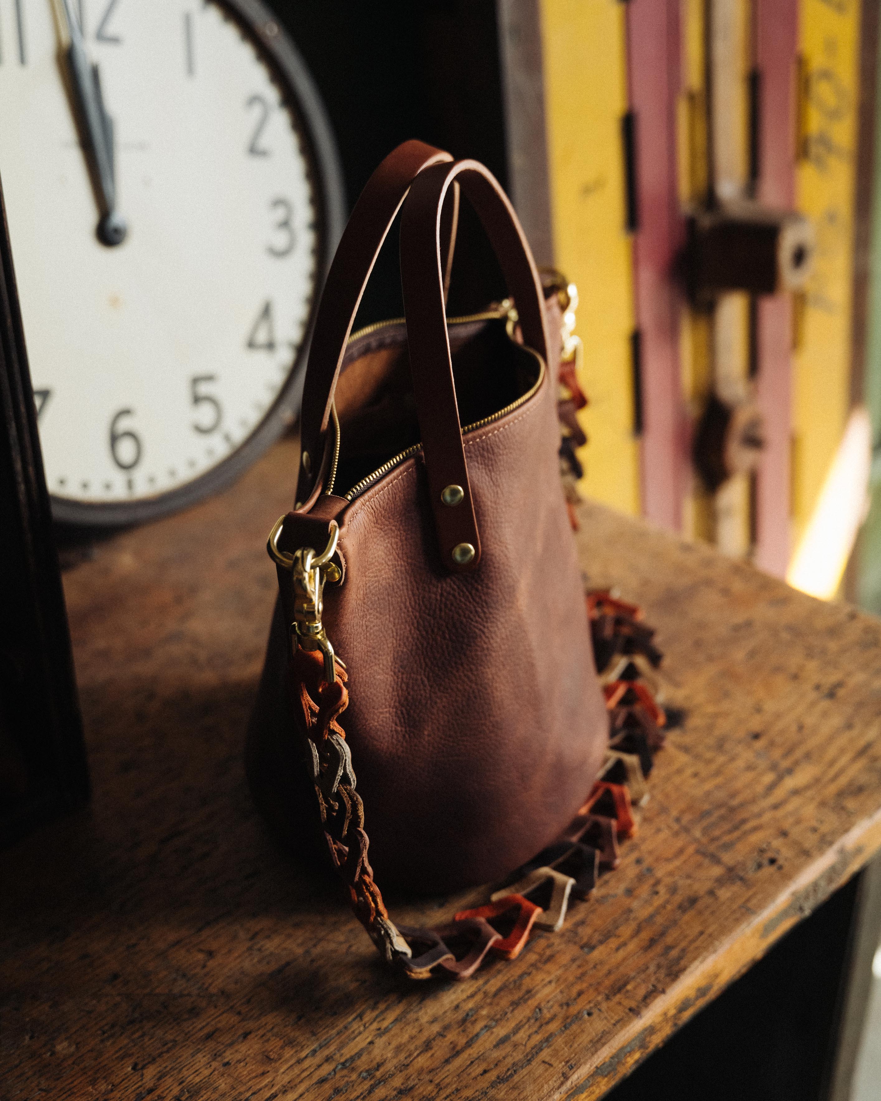 For the first time ever, you can add a zip closure to the new (and improved) Bucket Tote! This adds some extra security for those that want to keep everything locked down. We add an 11" brass zipper that includes our matching leather pull for easy pulling. This option pairs especially well with the optional D-rings for a fully maxed out bag!