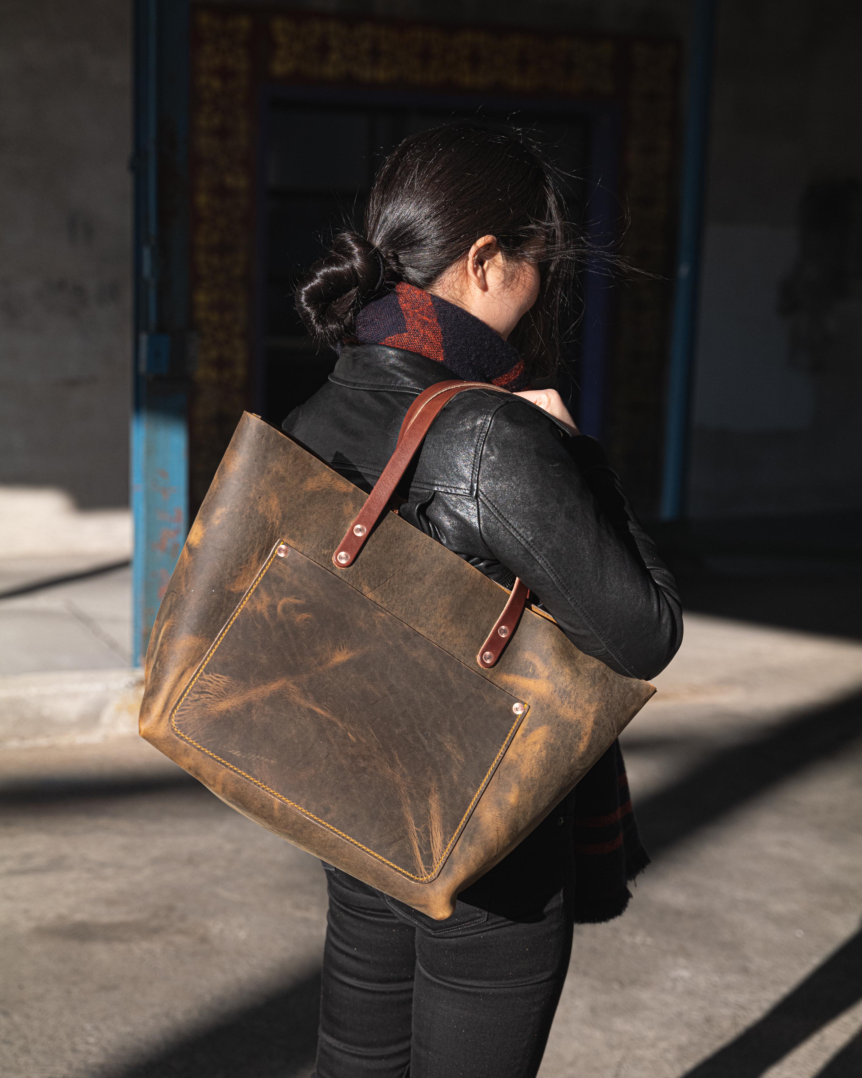 Like every KMM & Co. bag, the market tote is handmade of full-grain leather. That's the highest quality leather made, and we stock more (and brighter!) colors than just about anyone else.