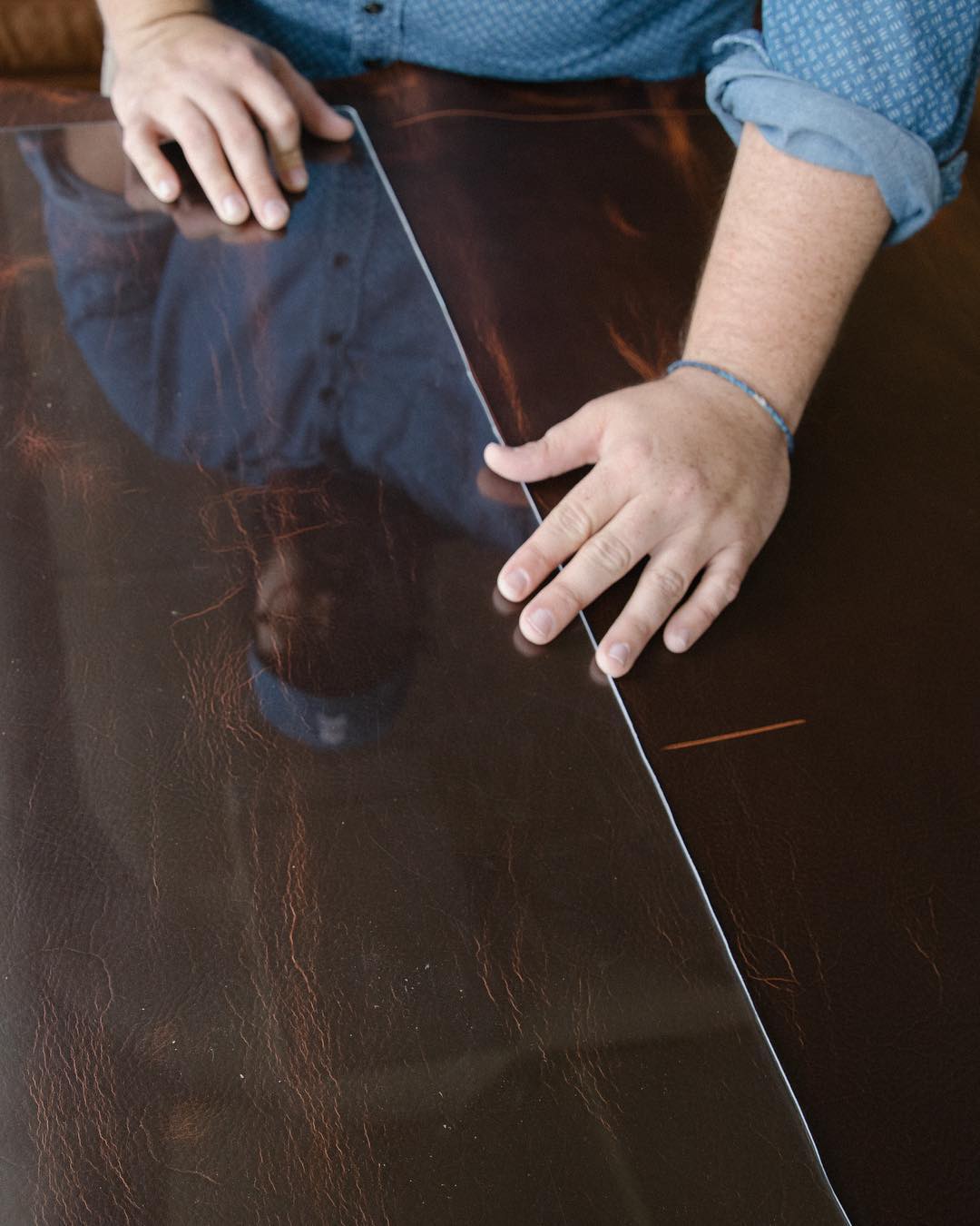 Each bag is handmade in the USA (in our Atlanta studio)! A market tote starts on the cutting table, where we cut the bag from a beautiful side of full-grain leather with lots of natural character.