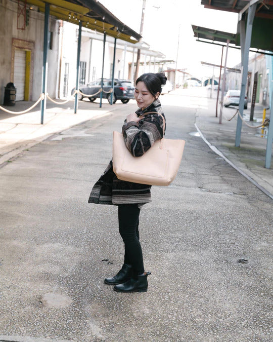 The classic tote has been our best-selling silhouette since the beginning. For many people, a tote has enough space for everyday use. But if you tend to carry more or larger items – like a big laptop, an extra pair of shoes, or a bagged lunch – you might appreciate the extra space in a market tote.