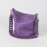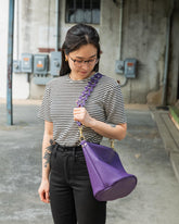 Purple Italian Pebbled Zip-Top Bucket Bag