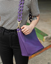 Like every KMM & Co. bag, your zip-top bucket bag is handmade in our Atlanta studio, and it's made to order, just for you. You can choose from a colorful range of amazing full-grain leathers. Plus, you can pick which crossbody strap is perfect for you: the endlessly adjustable chain link strap, or the soft and squishy two-ply strap.