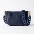 In addition to the classic belting-weight crossbody strap and the customizable chain link strap, we also offer a two-ply strap that can be made to match your bag. Each one is stitched with matching thread and is soft and comfortable to carry.