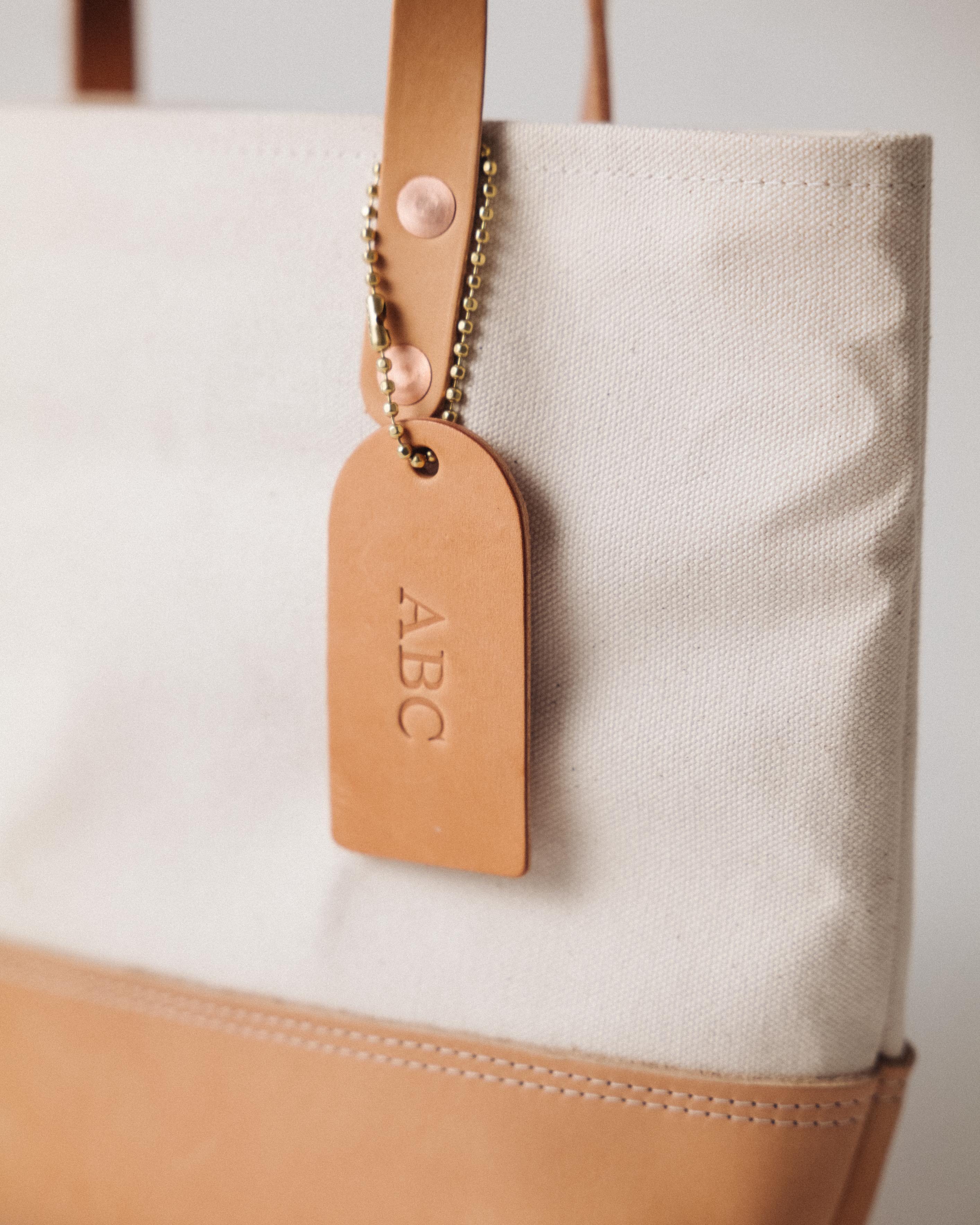 Want to add some extra personality to your new tote? Use the promo code FREETAG to get a free mini tag that matches the handles of your bag! Just add it to your cart on this page — and let us know what you'd like embossed!