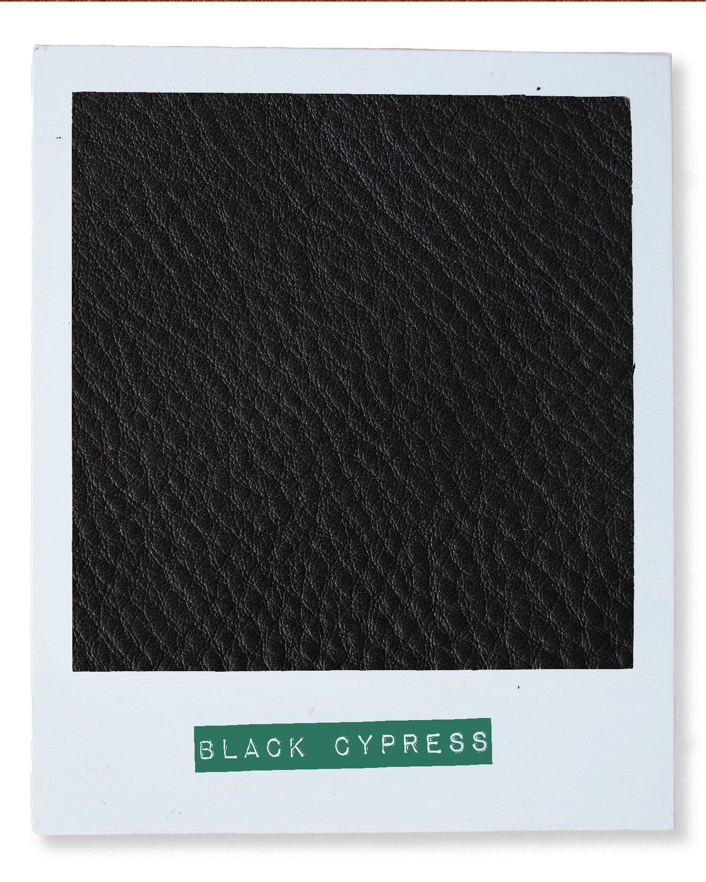 Black Cypress is a full grain chrome tanned leather that is a customer favorite. It has a soft hand feel, pebbled texture, and pigmented color. Cypress is available in a wide range of classic neutral colors as well as some brighter shades for anyone that wants something a little different.