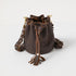 Next, we stitch the body pieces of the bag together. Then, we make the drawstring closure: a perfectly proportioned leather cord with an easy-to-slide keeper and elegant (yet fun!) leather tassels.