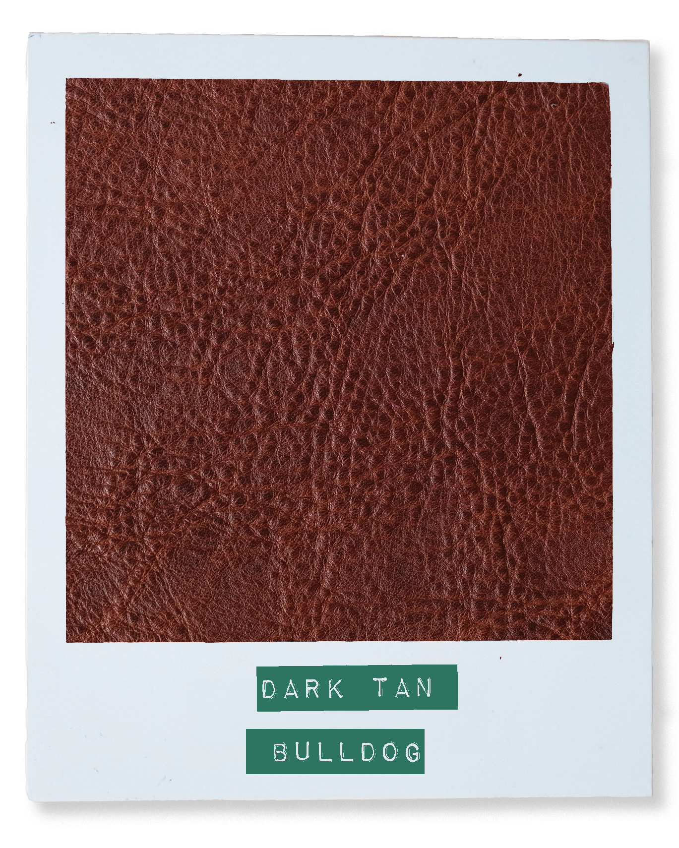 Bulldog is a recent addition to the KMM & Co. lineup. This scratch resistant, full grain leather is drum-dyed and tumbled to achieve a soft, pebbled texture. Bulldog leathers are aniline and wax finished with some stretch and a slight pull-up effect. They are USA Cowhides finished in Mexico by Vargas Tanning and come in some pretty amazing colors.
