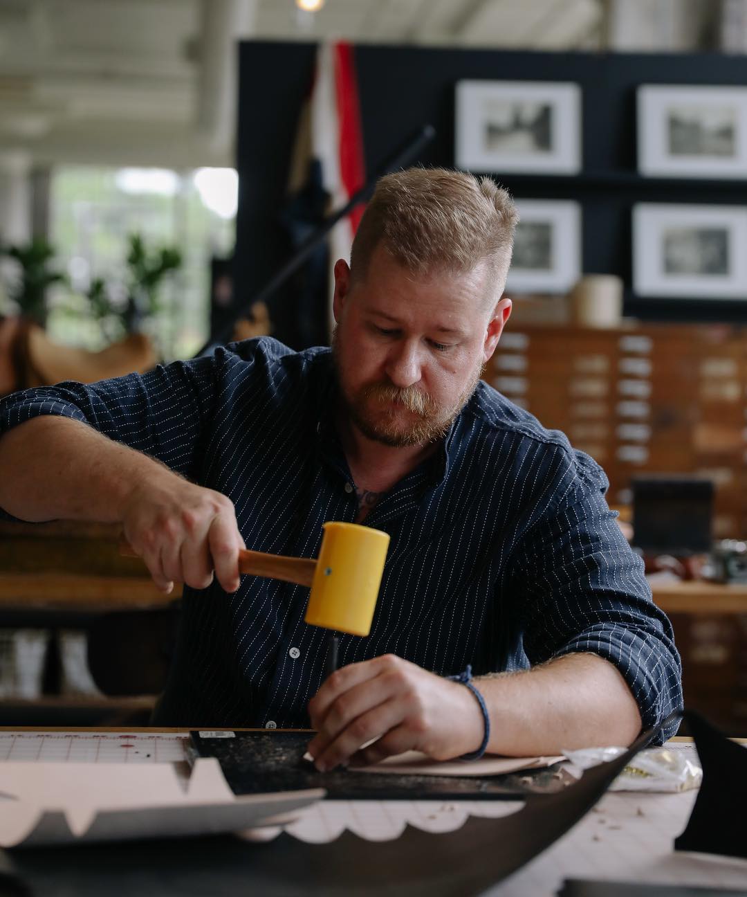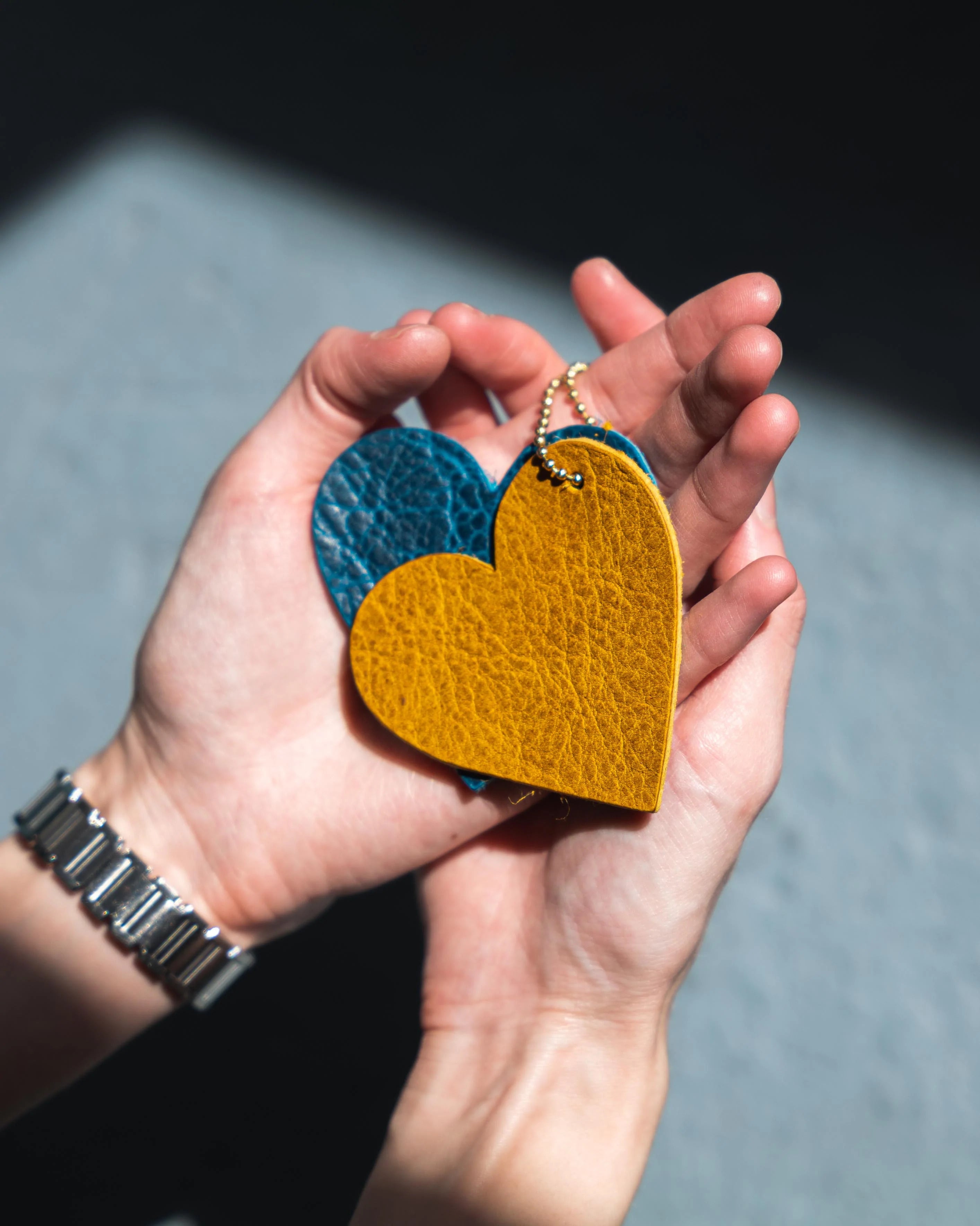 Just like every KMM & Co. accessory, our leather bag charms are handmade and made to order from beautiful full-grain leather. They get started on the cutting table, where we choose the perfect piece of leather for each charm.