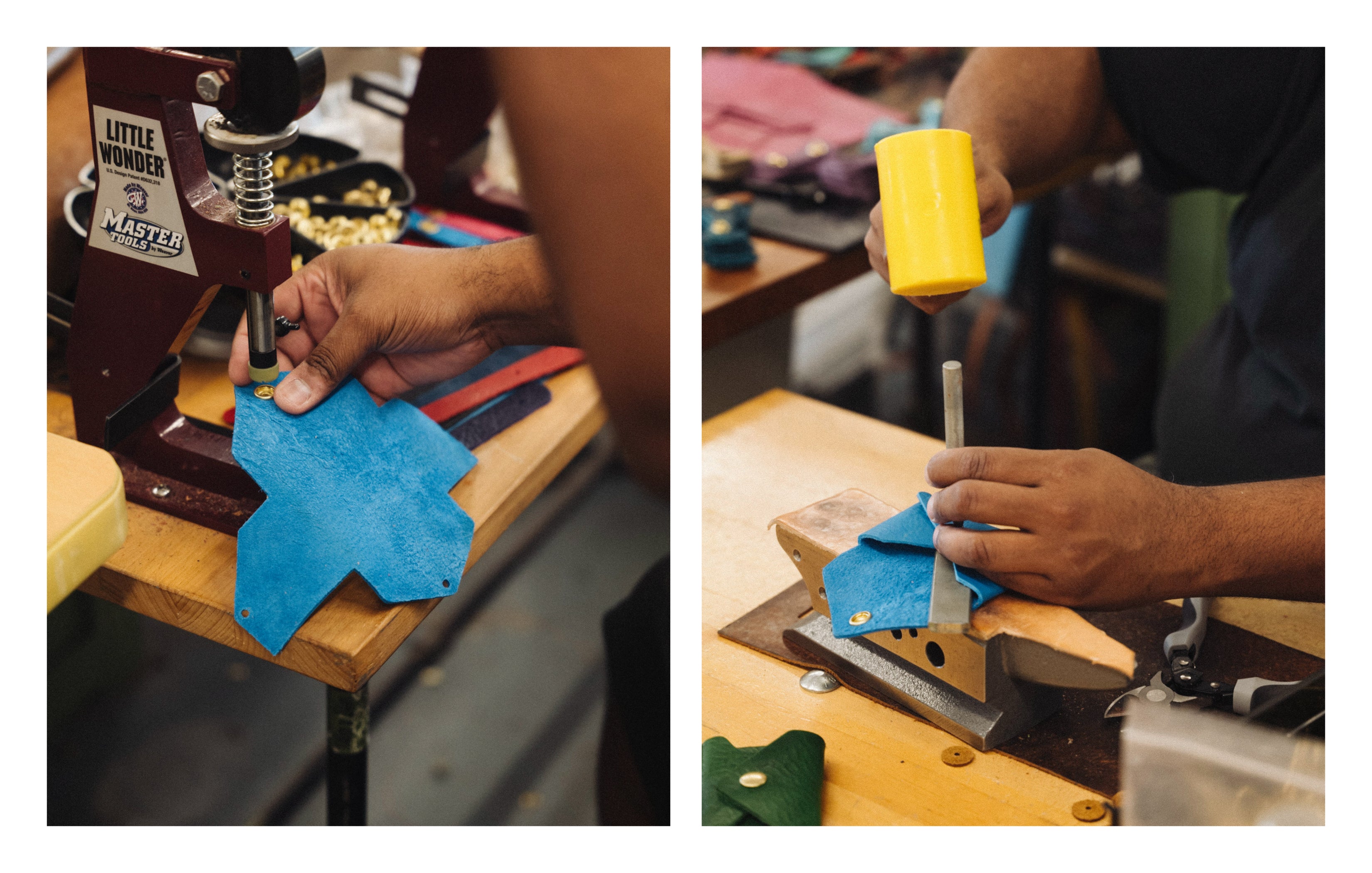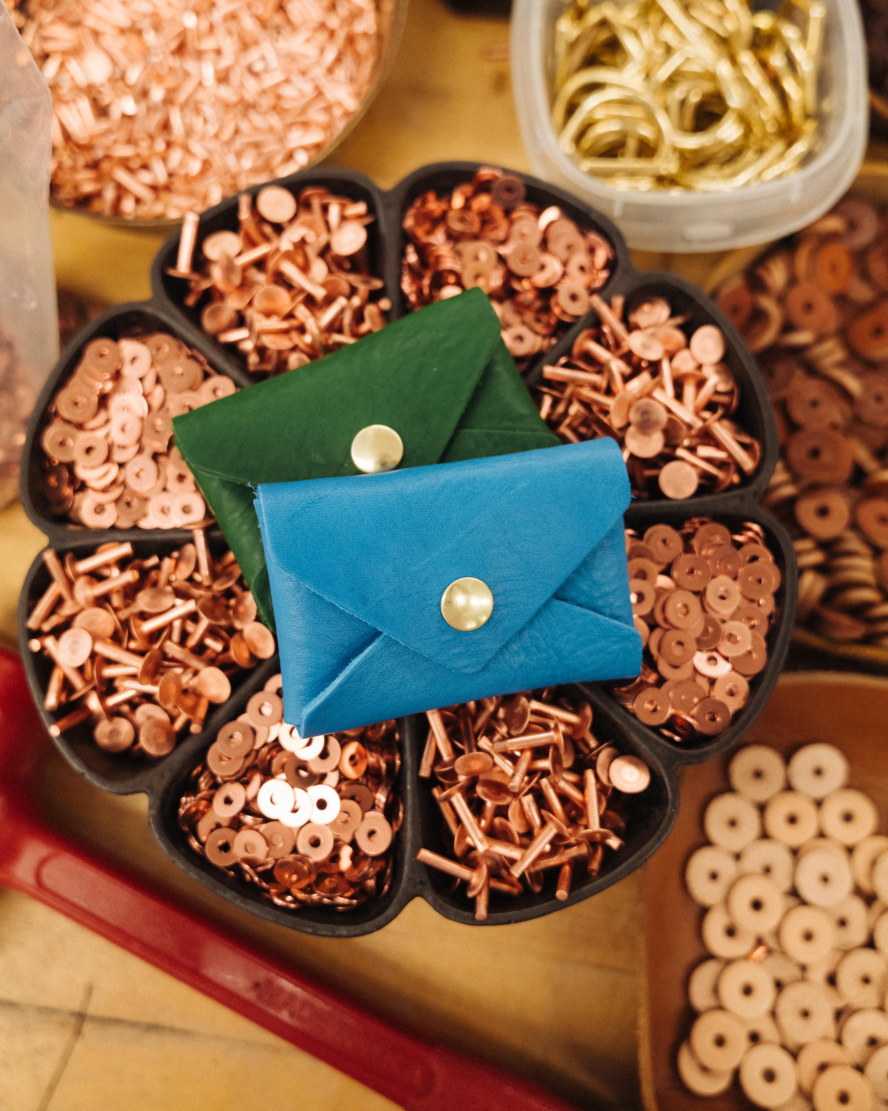 The long answer: We sell more bags than wallets, so we always have small pieces of leather left over — and left sitting in carts all around our studio. We'd love to make those scraps into wallets and give them away to future KMM & Co. customers. That way, you can get hands-on experience with some of our most popular leathers!