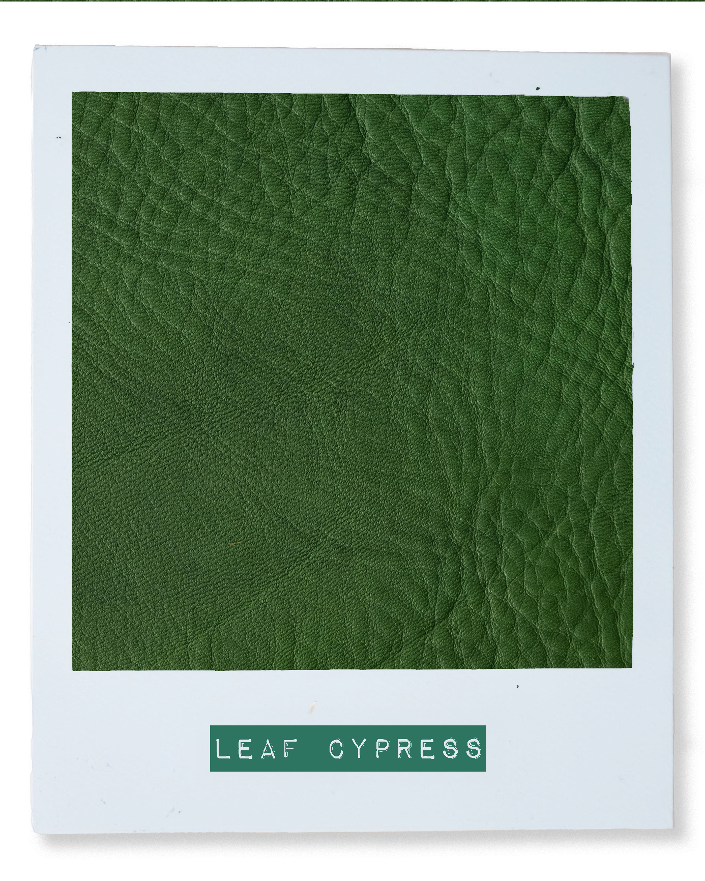 Leaf Cypress is a full grain chrome tanned leather that is a customer favorite. It has a soft hand feel, pebbled texture, and pigmented color. Cypress is available in a wide range of classic neutral colors as well as some brighter shades for anyone that wants something a little different.