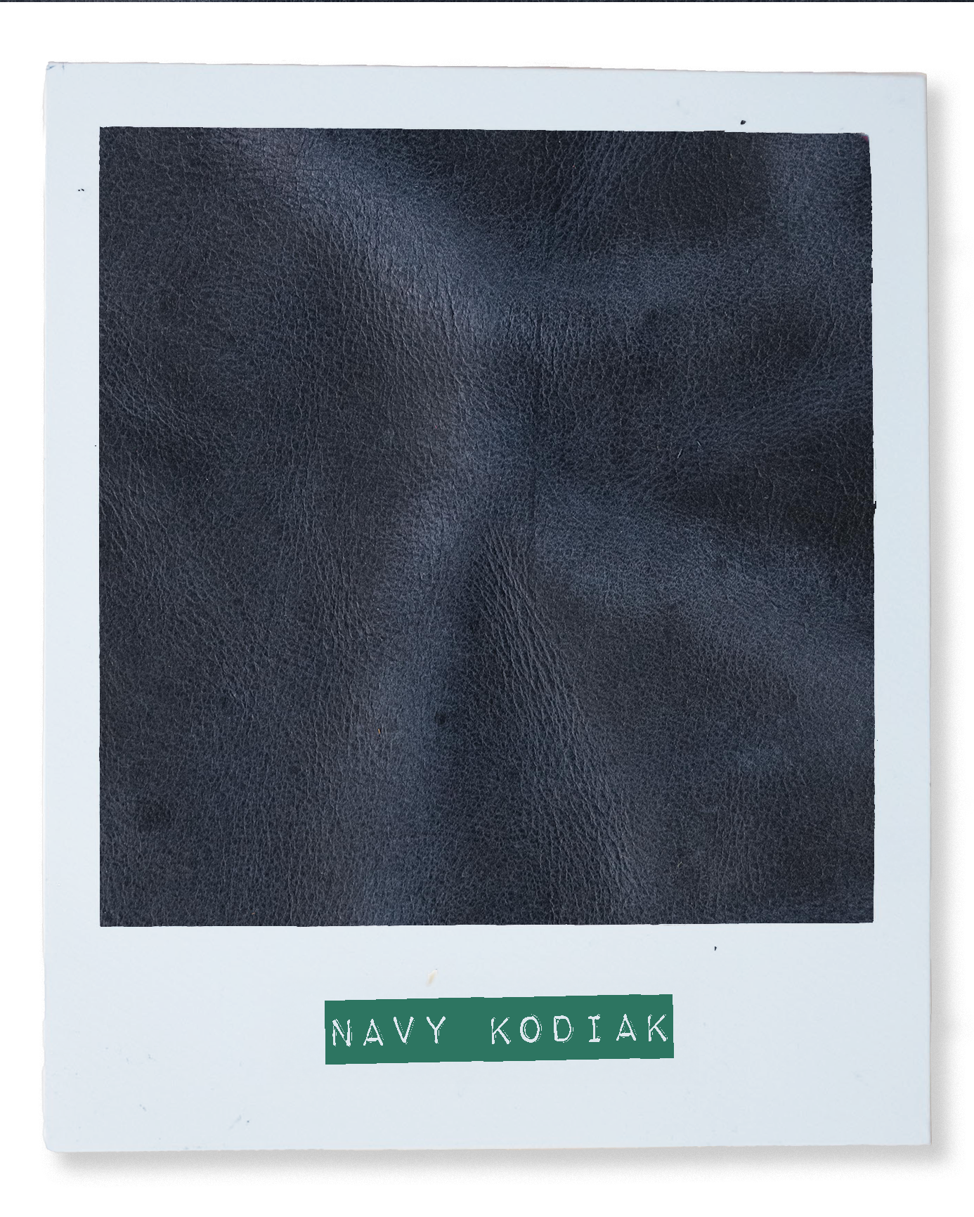 See more in Navy Kodiak, a pebbled, oil-tanned leather with a slouchy temper and soft feel.