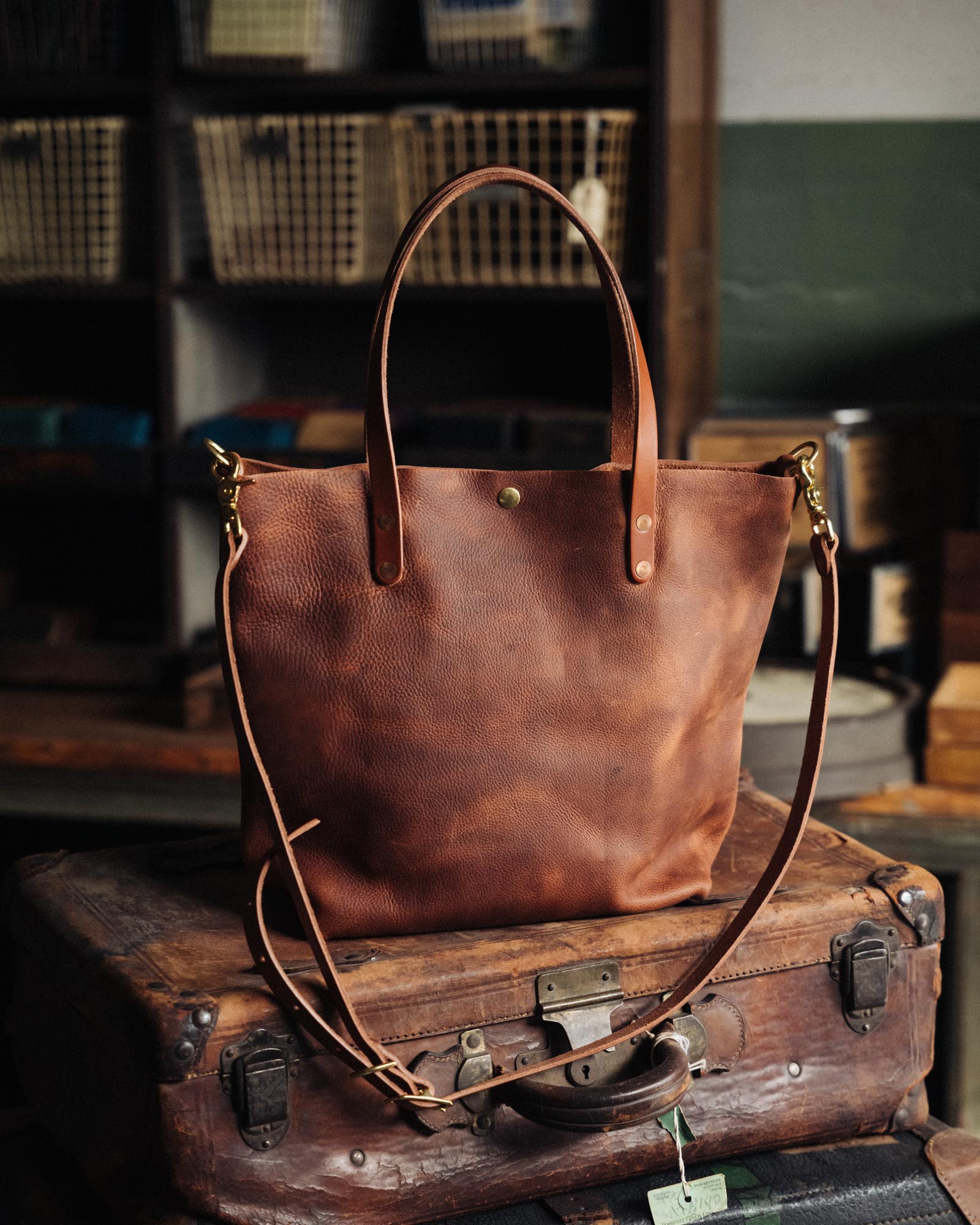 The classic tote becomes what you make it. Full-grain leather just gets better with wear! If you want a tote that's designed to go everywhere you go, to become an heirloom, and to acquire a patina unique to you, this might be the one.