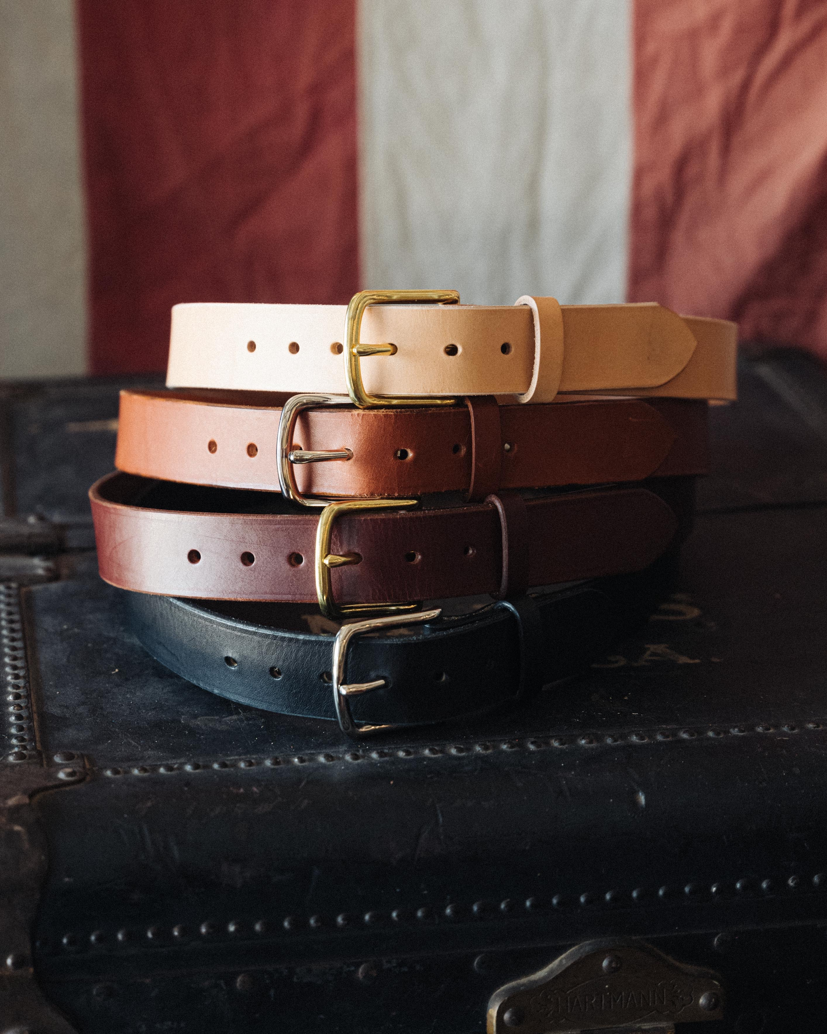 While a quarter-inch difference in width doesn't sound like a lot, it's enough to change the look and feel of the belt! The right width for you is a matter of personal preference. If it helps, we've always thought of a 1.5-inch belt as a work belt because of its larger proportions — but style is individual! A narrower belt will look and feel a bit lighter, while. a wider belt will look and feel a bit heavier. But both widths have the same traditional craftsmanship and heirloom-quality materials — which work well with everyone's style.